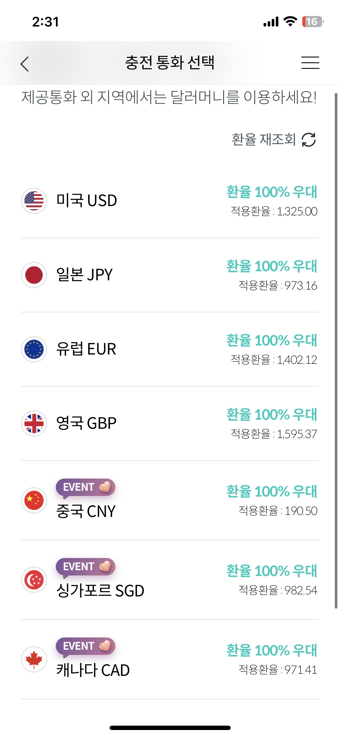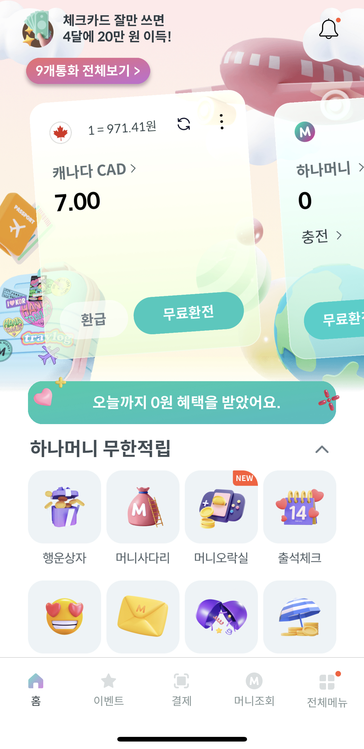 - 해당 모바일 환전된 금액만큼 카드에 자동 충전